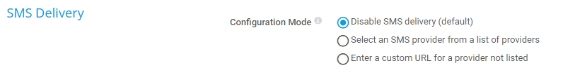 • Disable SMS delivery (default): Do not use SMS delivery.